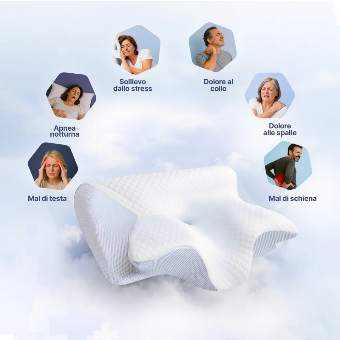 Il cuscino ergonomico Serenium™ è stato creato per questo: per liberare il respiro, riallineare la cervicale et farti dormire davvero — profondamente, senza dolore, senza interruzioni.